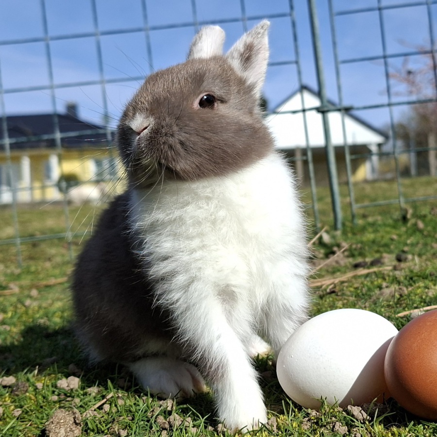 Rasse: Farbenzwerg blau mit weißen Abzeichen